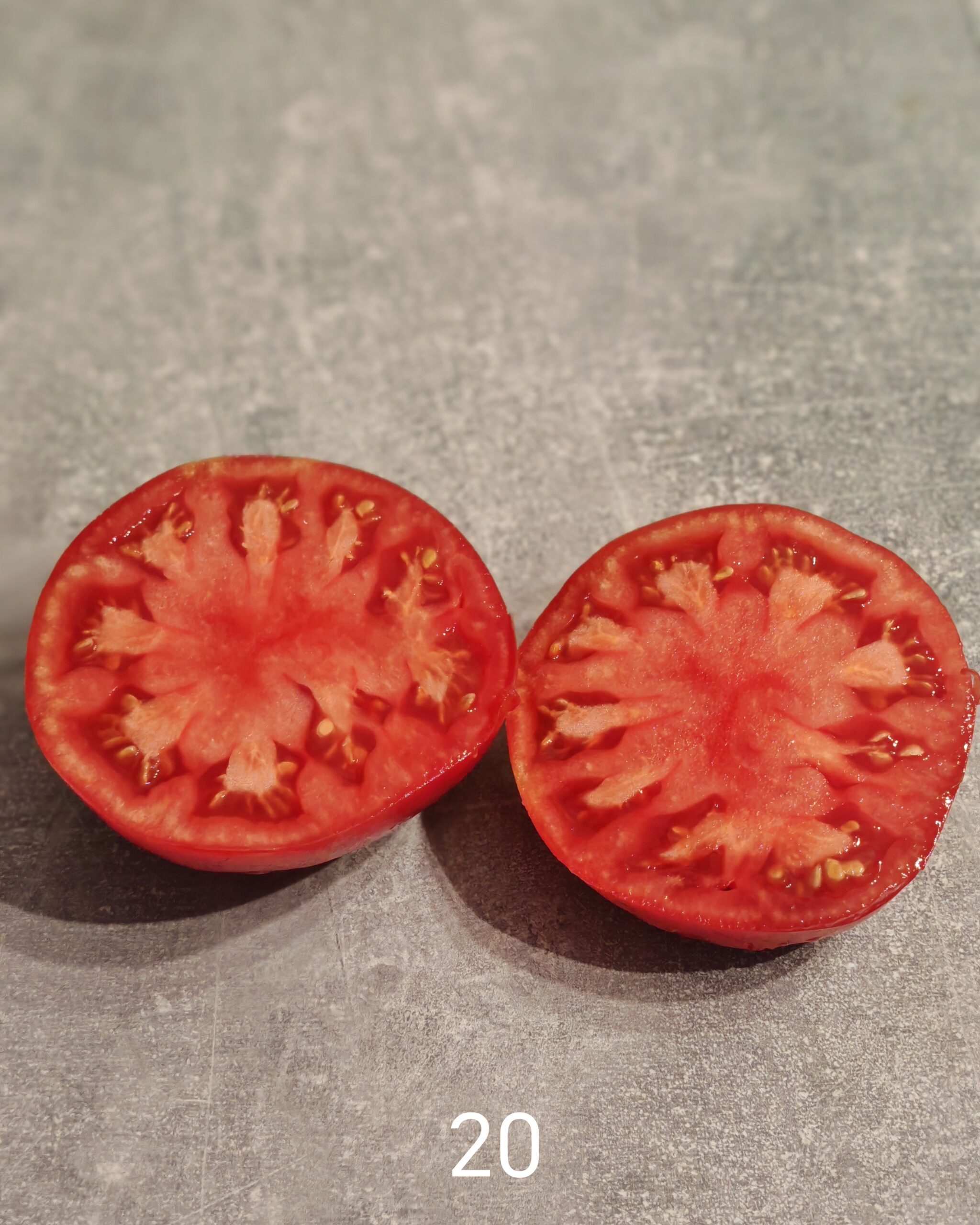 Kolor/ Kształt: Owoce różowo-malinowe, płasko-okrągłe, gęste, ale nie twarde, kolor może się zmieniać od jasnoróżowego do głębokiej karminowej, dobrze się przechowują i dojrzewają. Smak jest owocowy nie pękają. Owocowanie jest obfite, plon wynosi do 10 kg/m2.