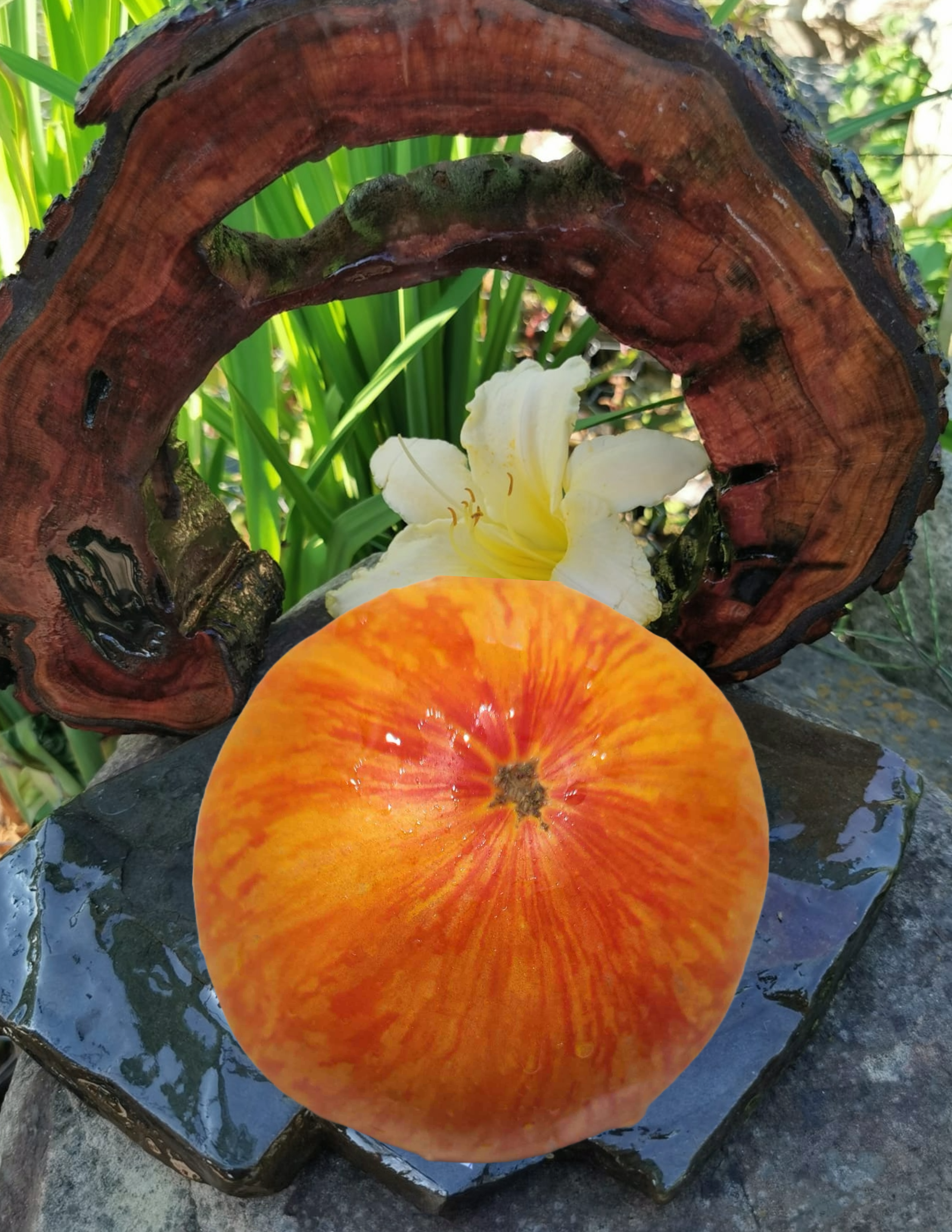 Kolor/ Kształt: Piękne duże owoce w żółte i pomarańczowo-czerwone paski na przekroju są czerwono-pomarańczowe, bardzo soczyste, słodkie i aromatyczne. Wspaniały smak!