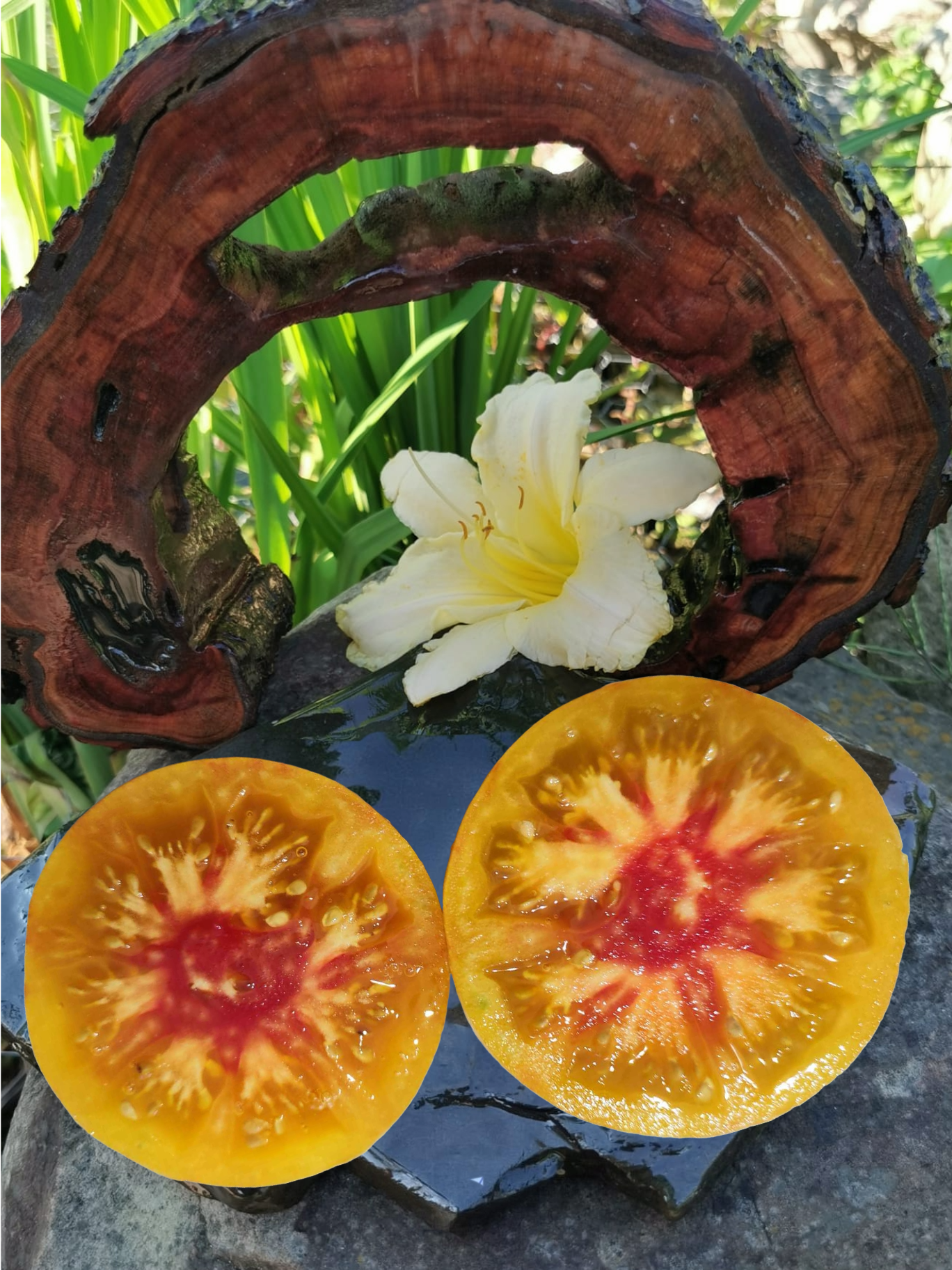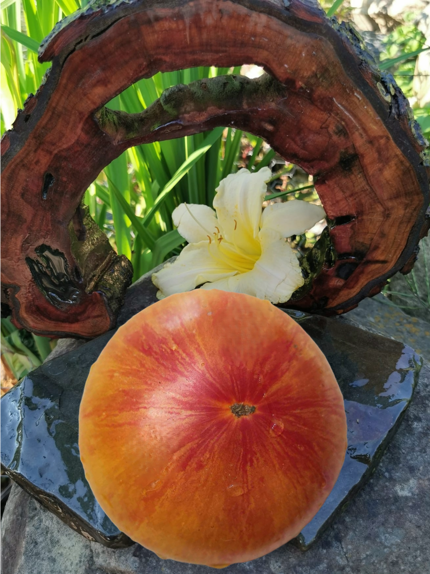 Kolor/ Kształt: Owoce o imponujących rozmiarach, typowe befsztyki, o słodkim soczystym miąższu z czerwonymi przebarwieniami o wyśmienitym, złożonym, łagodnym smaku. Kolor: Żółto-czerwony. Cienka skórka kryje pyszny, aromatyczny i soczysty miąższ.
