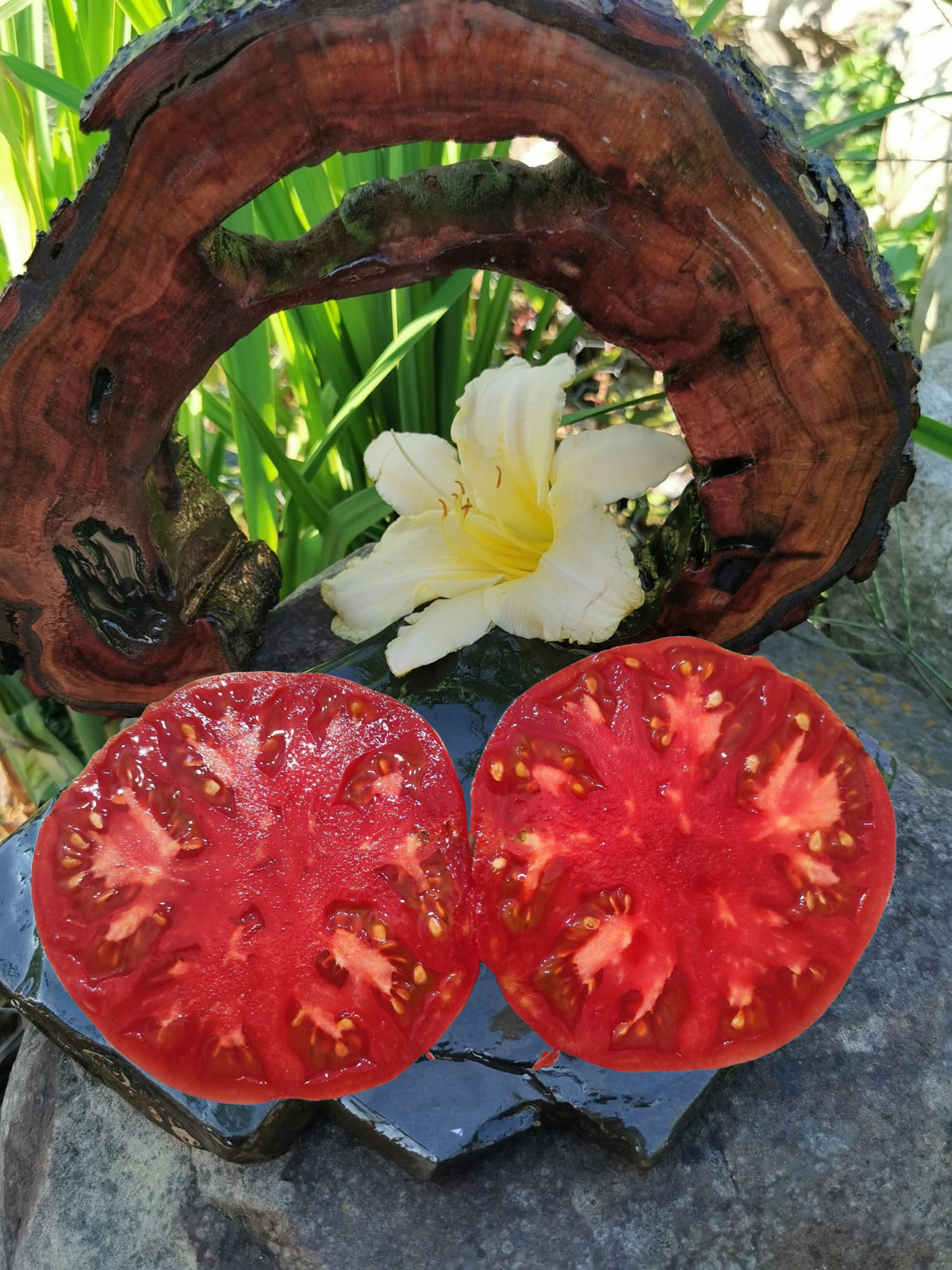 Kolor/ Kształt: Owoce duże, czerwone, okrągłe i mniej lub bardziej żebrowane, w miarę jak są większe, stają się zdeformowane. Miąższ jest gęsty, rozpływający się w ustach, różowy, o słodkim smaku, pozbawionym kwasowości.