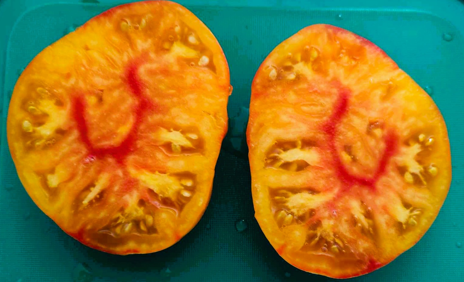 Kolor/ Kształt: Owoce okrągło-płaskie, na zewnątrz i wewnątrz żółtoróżowe, piękne w przekroju, mięsiste, marmurkowe, bardzo soczyste, o słodyczy i kwasowości, bogatym aromacie. Zewnętrzna i wewnętrzna barwa owoców w sezonie na jednym krzaku może zmieniać się od żółto-pomarańczowej na początku sezonu do prawie czerwonej na przełomie sierpnia i września.