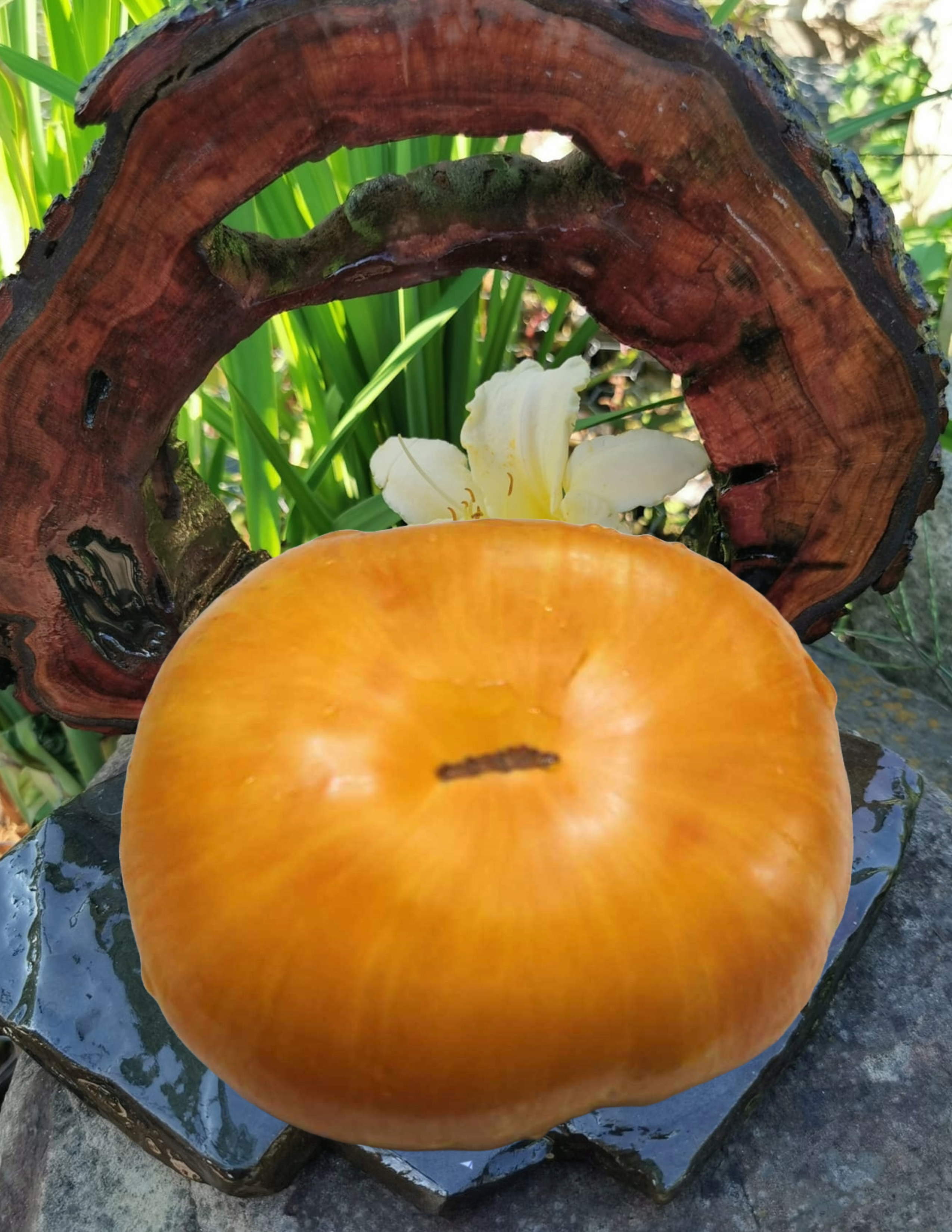 Kolor/ Kształt: Owoce są płasko zaokrąglone, w fazie dojrzałości pomarańczowe z żółtymi kresami i plamkami, mięsiste, smaczne, słodkie, pachnące.