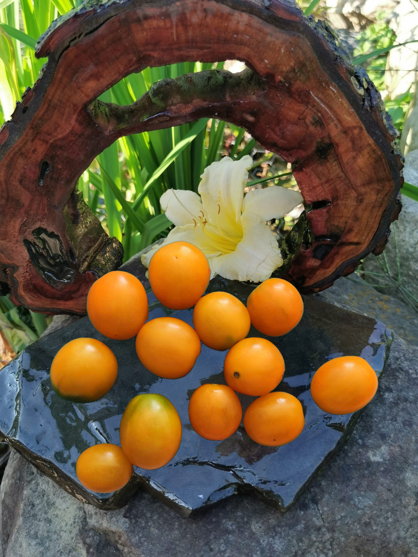 Kolor/ Kształt: Wytwarza głęboko żółte owoce wielkości piłeczki do ping-ponga.
