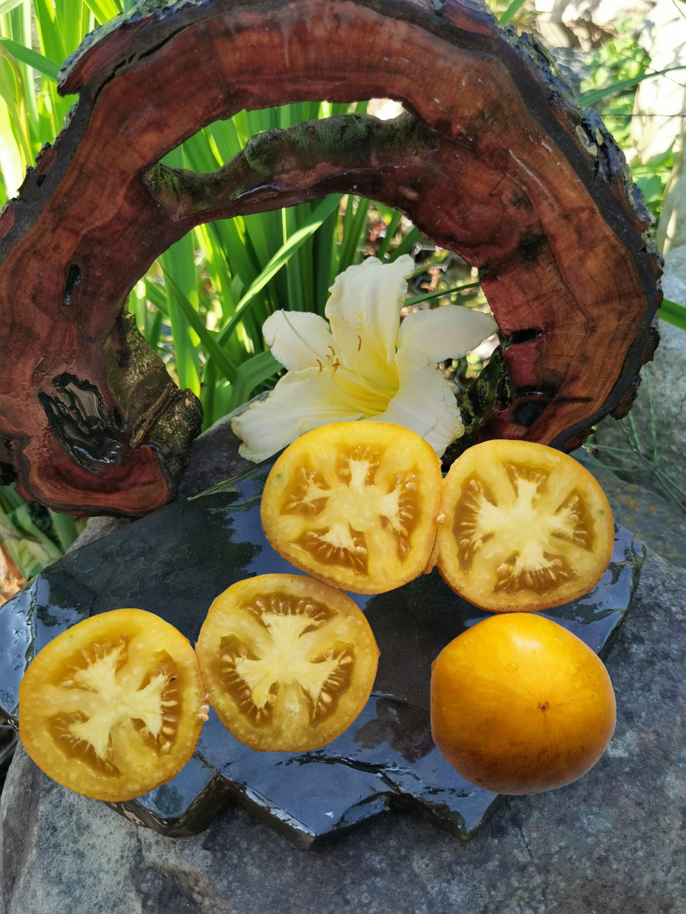 Kolor/ Kształt: Żółty/ kremowy kolor z domieszką antocyjanów, czarne ramiona.