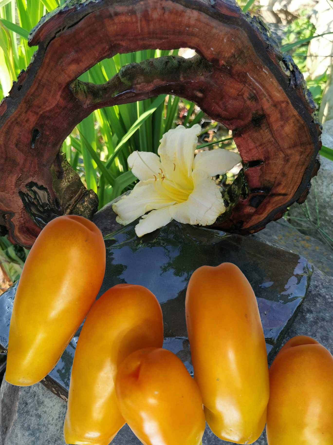 Kolor/ Kształt: Owoce neonowo żółte o rzadkim kształcie banana. Owoce są gęste, gładkie, nisko nasienne, złocisto-miodowe, mają łagodny smak deserowy.