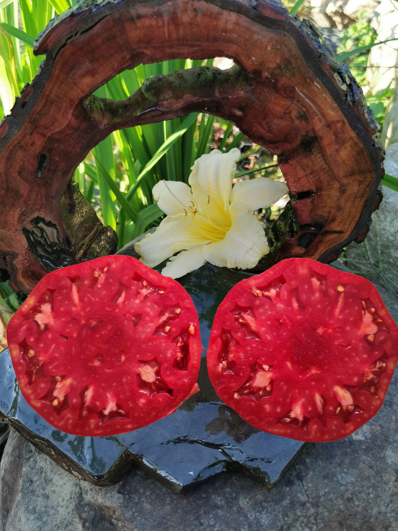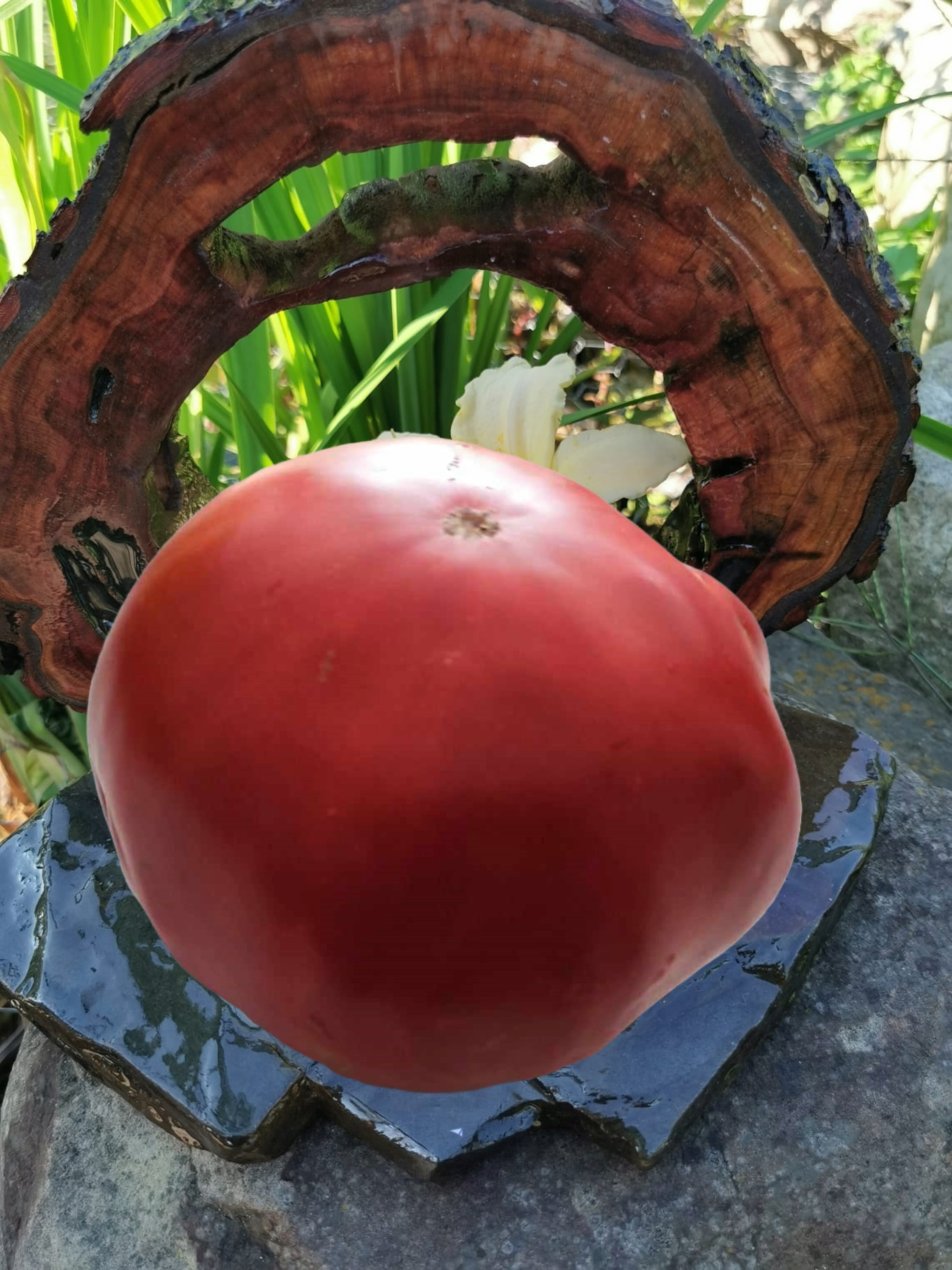 Kolor/ Kształt: W pełni dojrzałe owoce są intensywnie czerwone, okrągłe, lekko spłaszczone i żebrowane na ramionach. Twardy, solidny miąższ, o doskonałym, bogatym smaku pomidora i staromodnym aromacie pomidora.