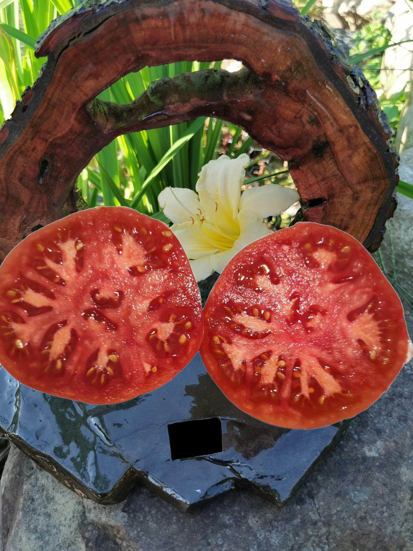 Kolor/ Kształt: W pełni dojrzałe owoce są intensywnie czerwone, okrągłe, lekko spłaszczone i żebrowane na ramionach. Twardy, solidny miąższ, o doskonałym, bogatym smaku pomidora i staromodnym aromacie.
