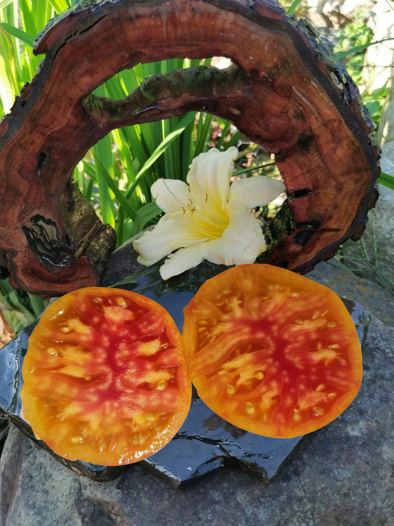 Kolor/ Kształt: Owoce spiczaste,  pomarańczowe z czerwonymi paskami. Bardzo słodki, miodowy smak i owocowy aromat. Odmiana jest odporna na pękanie i choroby pomidorów. Bardzo produktywna odmiana.