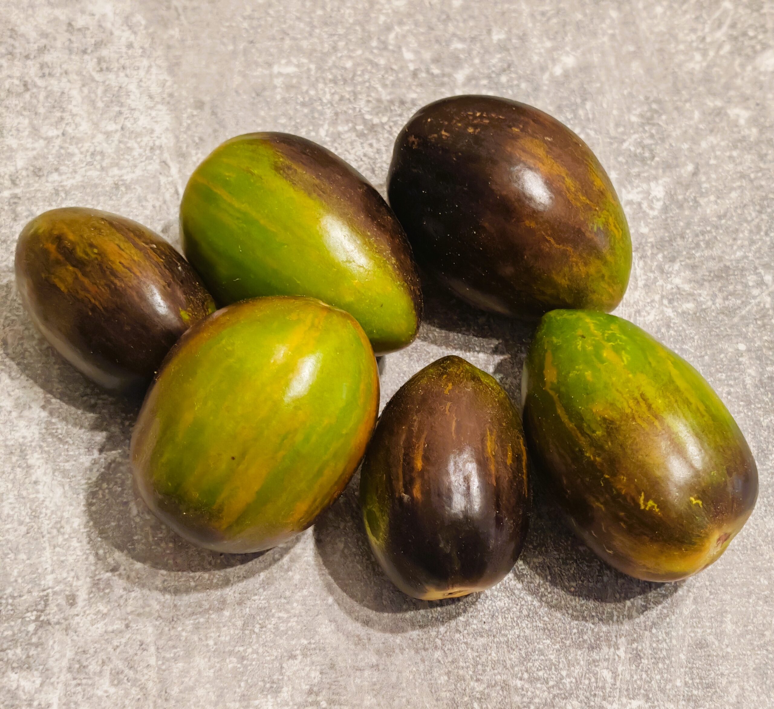 Kolor/ Kształt: Owoce mniej lub bardziej wydłużone, typu śliwkowego, czasem pulchne w przypadku owoców podwójnych. Ubierz się tak, aby zieleń, czerwień i brąz mieszały się ze sobą, z dodatkiem fioletu. Miąższ żółtozielony, lekko nakrapiany czerwienią w środku.