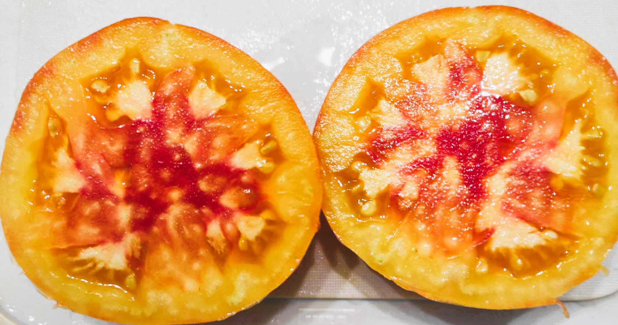Kolor/ Kształt: Owoce spłaszczone, pomarańczowo-czerwone, soczyste, mięsiste, bardzo smaczne, słodkie. Owoce są dość gęste, nie mają żadnych uszkodzeń, nie pękają i nie chorują. Po przekrojeniu wyczuwalny jest silny korzenny aromat, ujawnia się żółto-pomarańczowy miąższ z jasnymi, pięknymi czerwonymi promieniami. Smak jest aromatyczny i słodki.