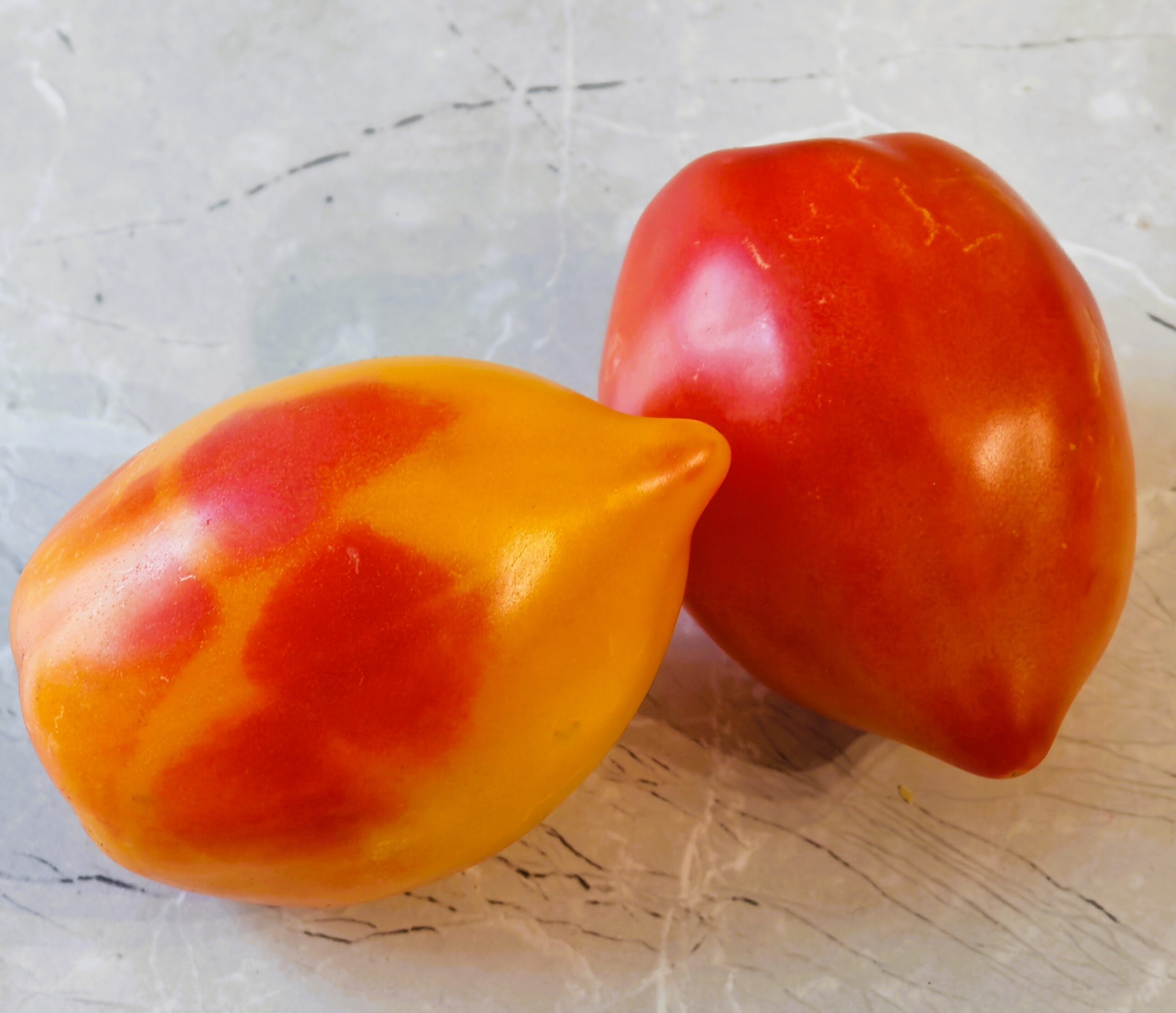 Kolor/ Kształt: Owoce o wydłużonym, śliwkowym kształcie, zakończone spiczastym zakończeniem. Skórka pomarańczowożółta, w dojrzałości przybierająca różowoczerwony rumieniec. Soczysty, dwukolorowy, pomarańczowo-żółty miąższ z różowymi żyłkami. Wyśmienity smak.