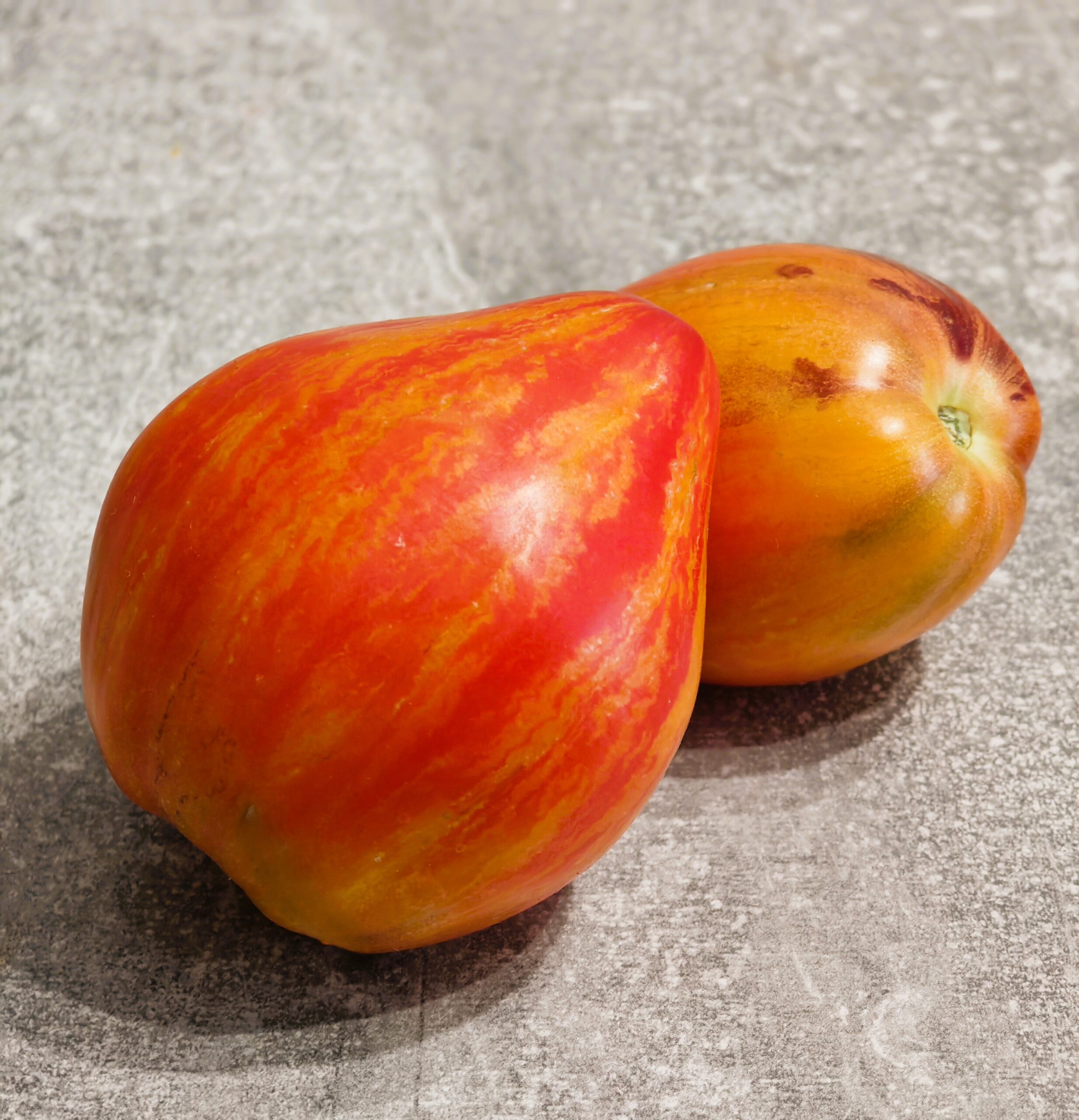 Kolor/ Kształt: Owoce to urocze żółto-pomarańczowe serca z czerwonymi paskami. Miąższ jest dwukolorowy, dwukolorowy. Smak słodki.