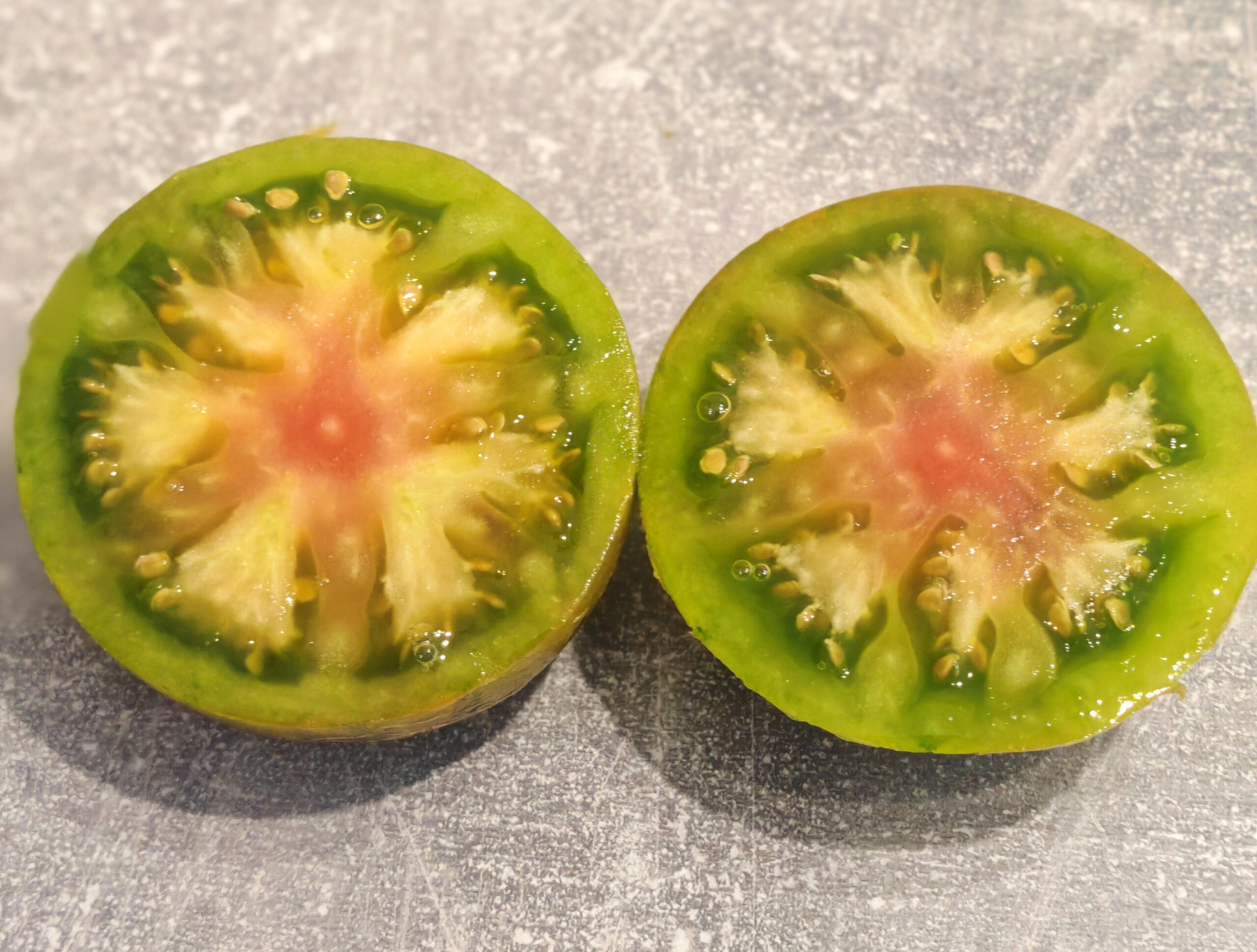 Kolor/ Kształt: Owoce to befsztyk, GWR, o niskiej kwasowości, mięsisty, soczysty i po prostu cudowny! Dojrzałe mają bursztynowo-zielony kolor z fragmentami intensywnego różu na zewnątrz. Wnętrze było jeszcze ładniejsze i stanowiło marmoladę, soczyste, pestkowe dzieło sztuki w kolorze żółto-zielono-intensywnego różu!
