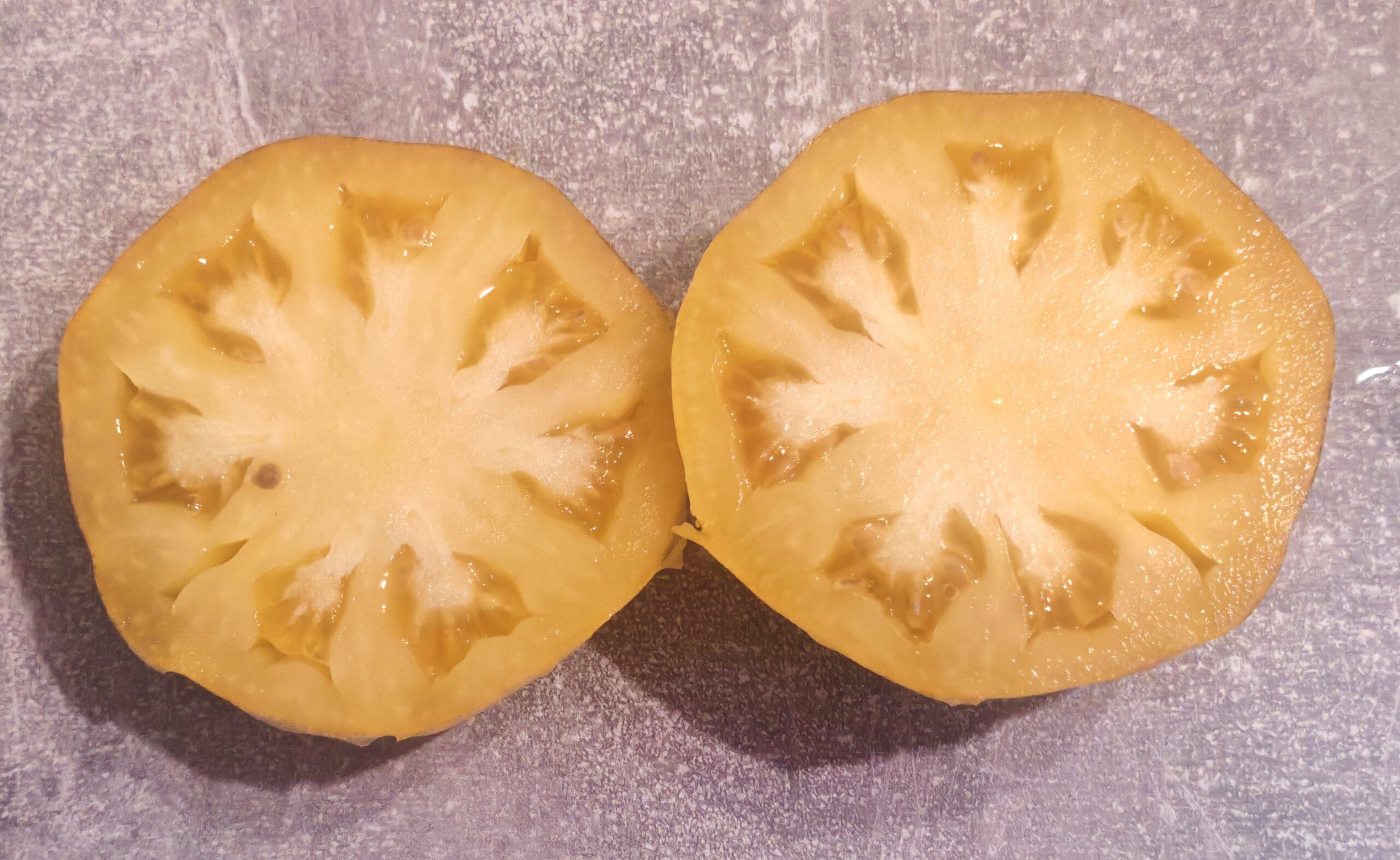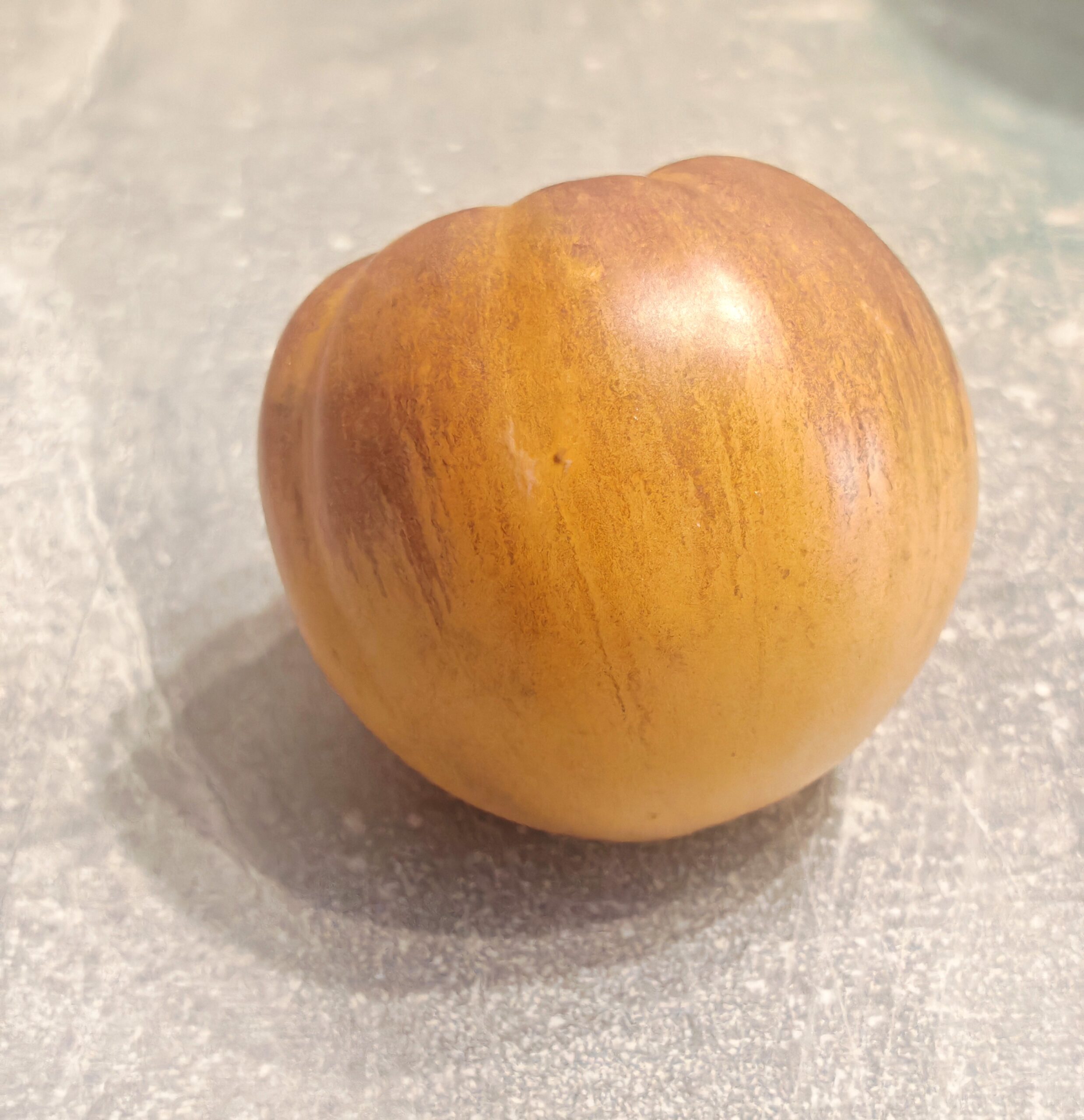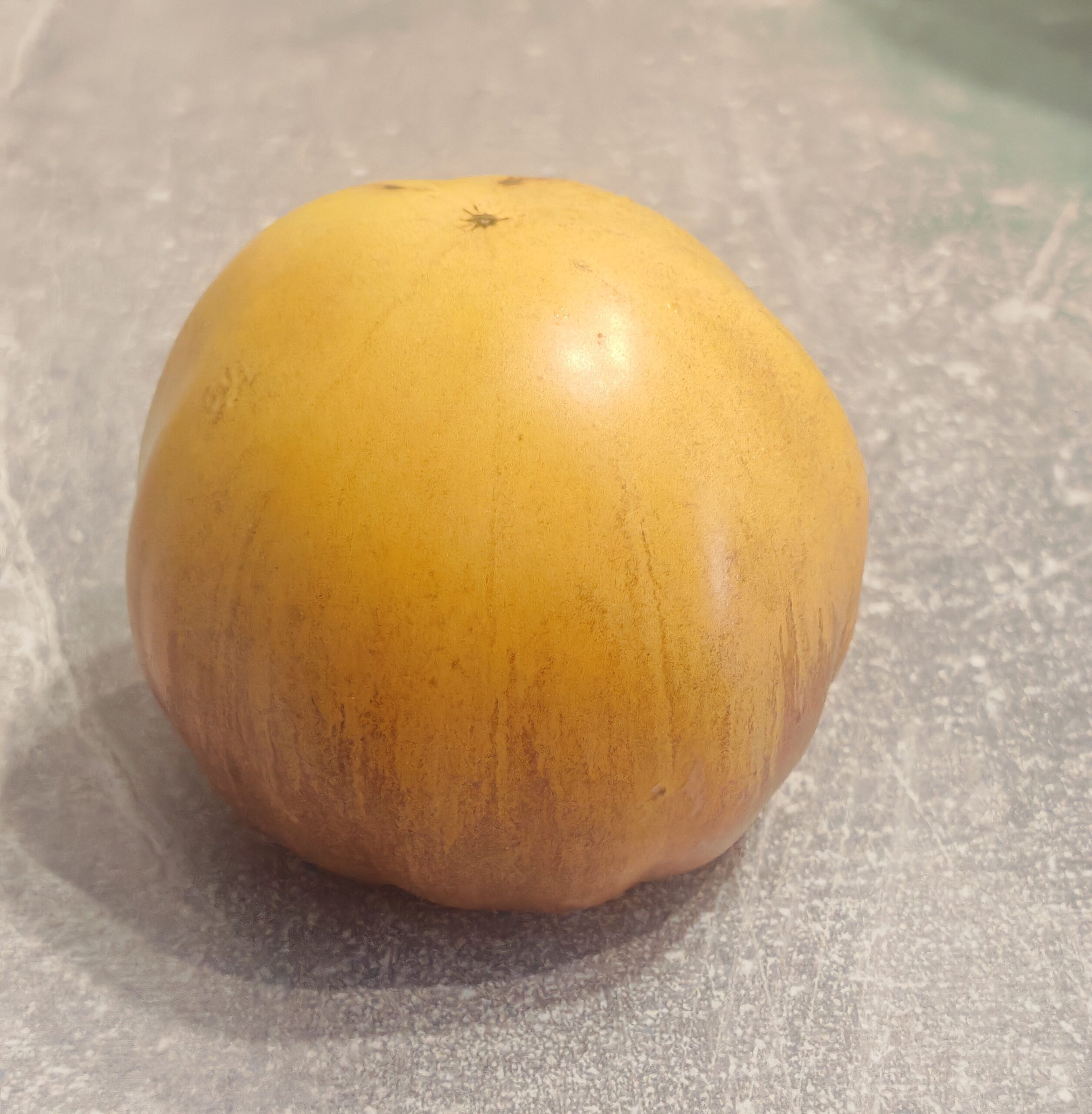 Kolor/ Kształt: Owoce są płaskie, okrągłe, o bujnych ramionach, żółtopomarańczowe z antocyjanowymi plamkami i paskami. Miąższ jest soczysty.