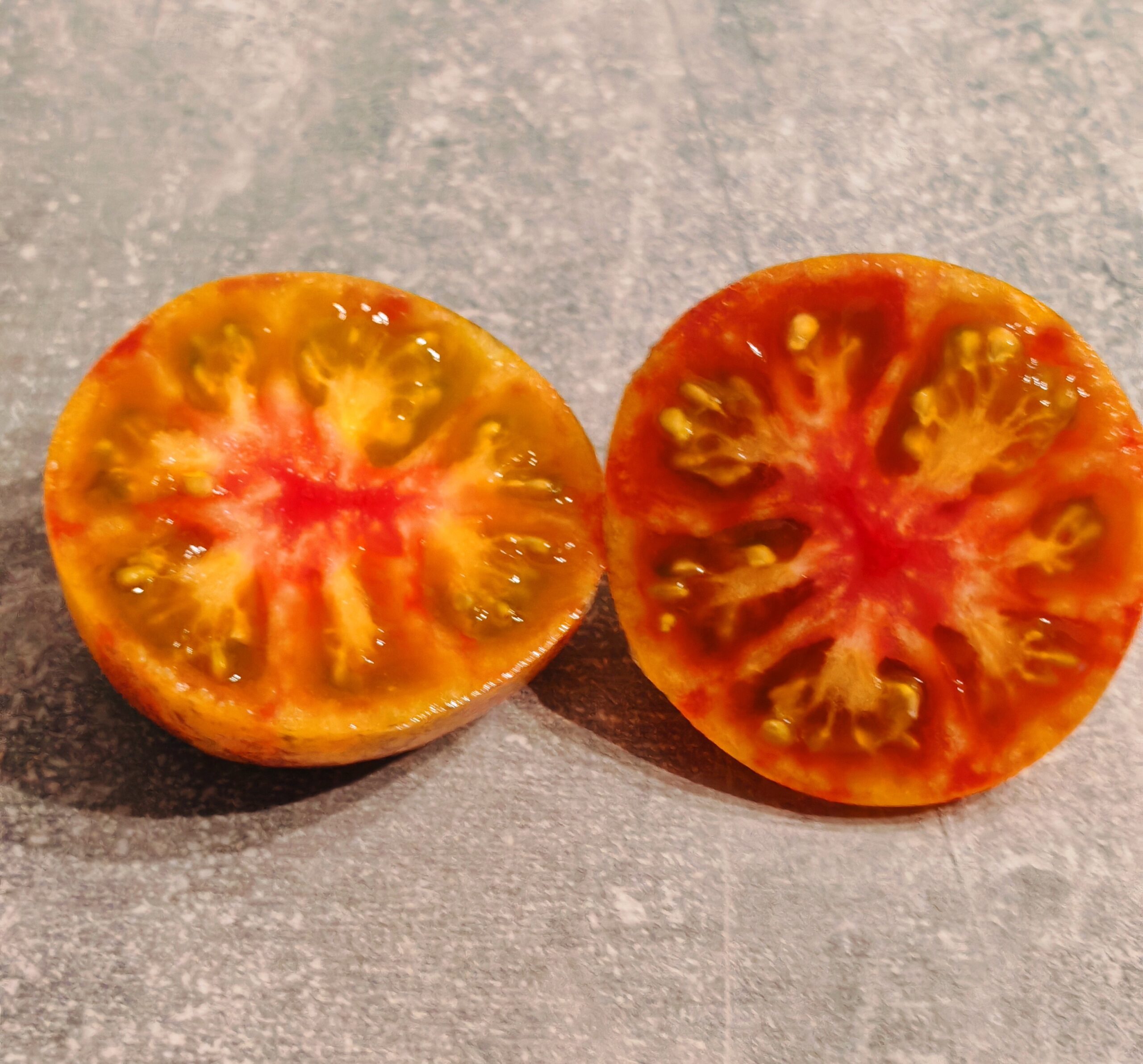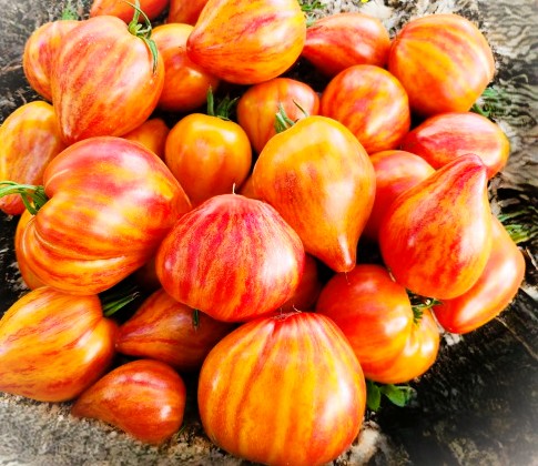 Kolor/ Kształt: Owoce są bardzo piękne, sercowate, niektóre bardziej wydłużone. Miąższ jest dwukolorowy, o owocowym smaku, bardzo słodki.