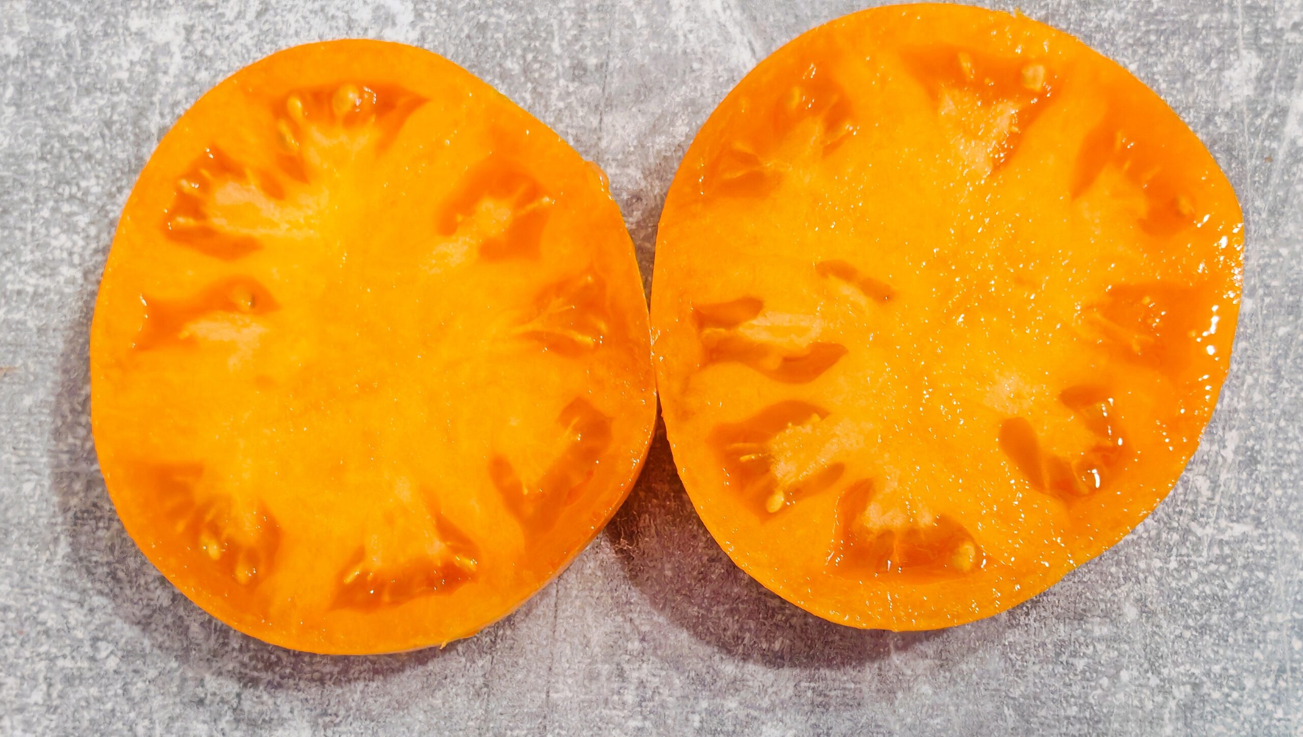 Kolor/ Kształt: Owoce jasnopomarańczowe, paskowane steki wołowe. Bardzo mięsiste i smaczne, słodkie z kilkoma owocowymi nutami.
