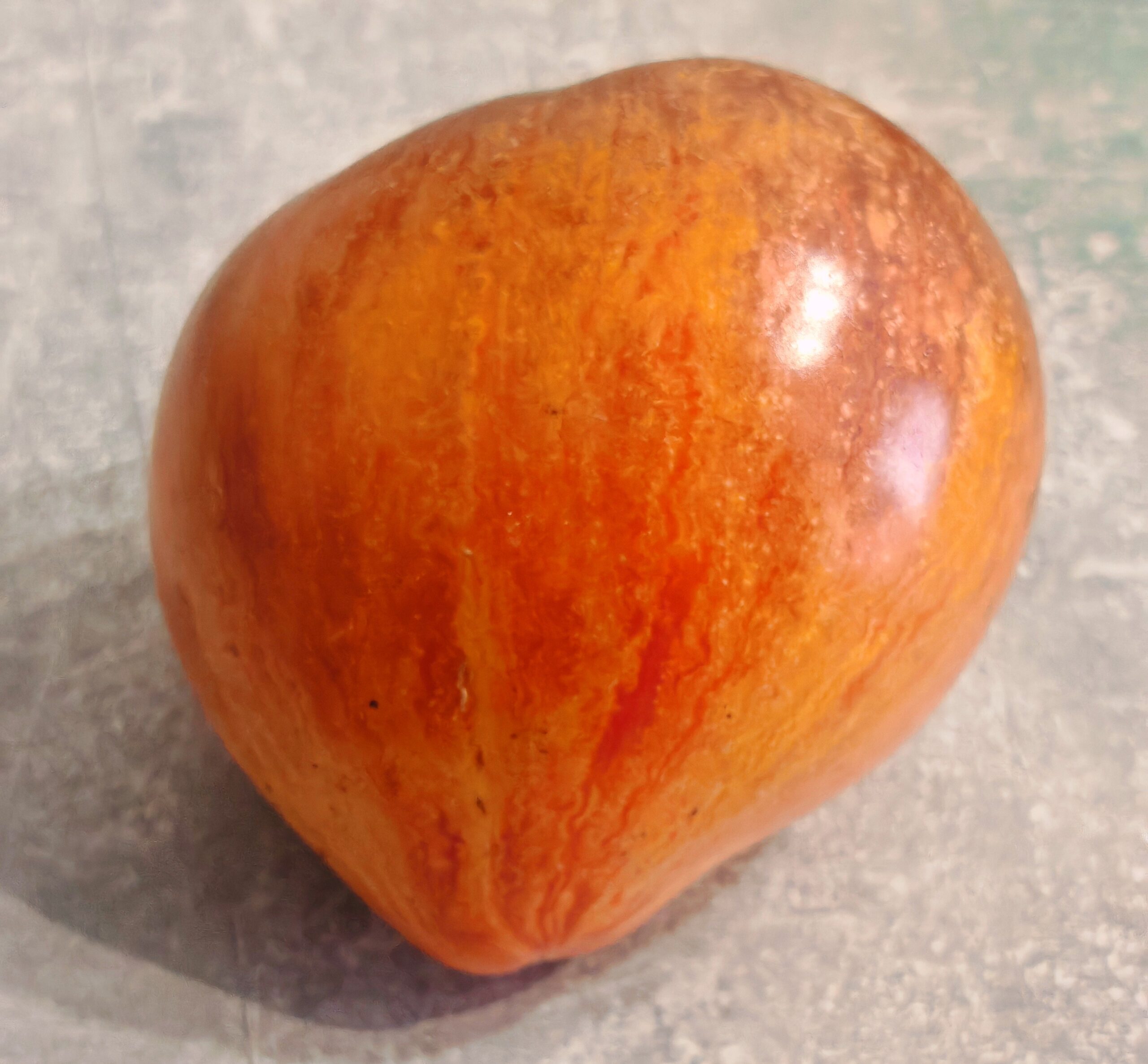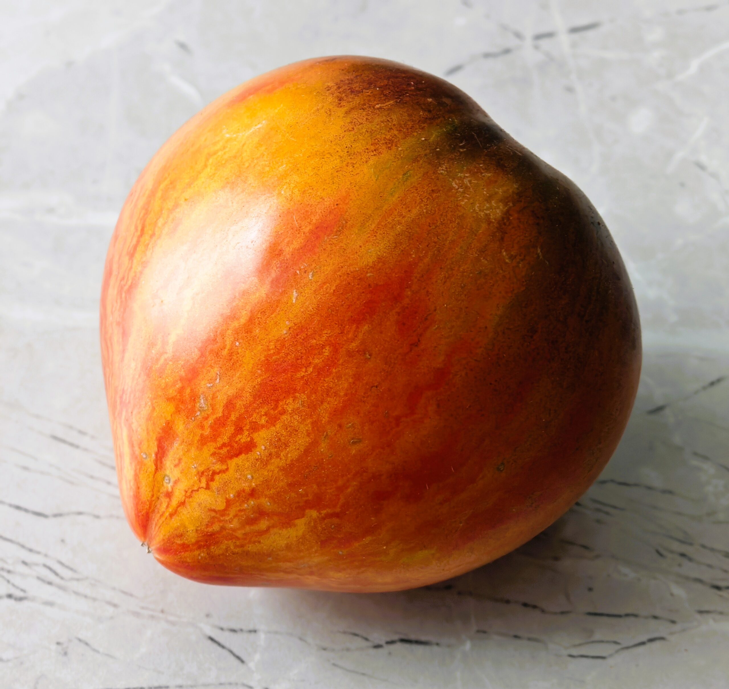 Kolor/ Kształt: Owoce są sercowate i sercowate, pomarańczoworóżowe z dodatkiem antocyjanów, bardzo ładne. Smaczne, miąższ marmurkowy, soczysty, słodki w smaku