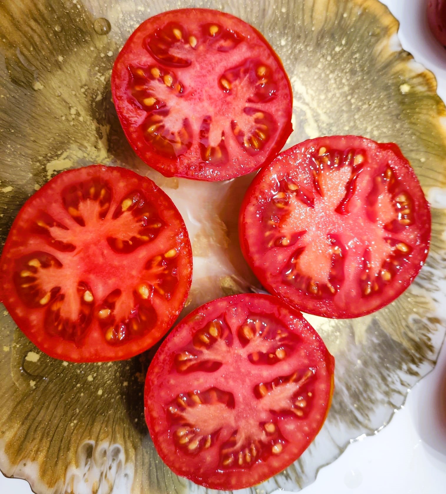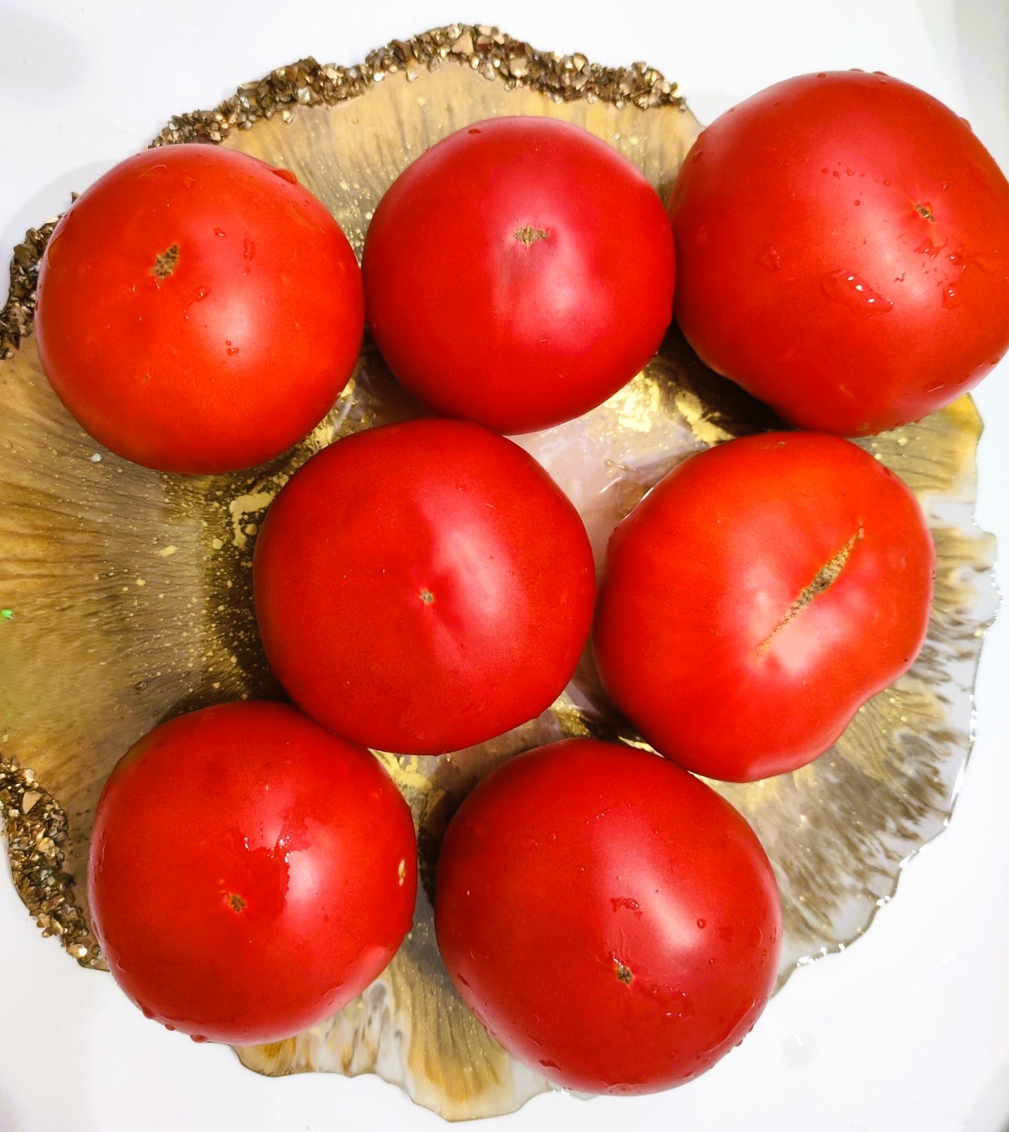 Kolor/ Kształt: Owoce okrągłych, czerwonych pomidorów, które są łagodne i soczyste.